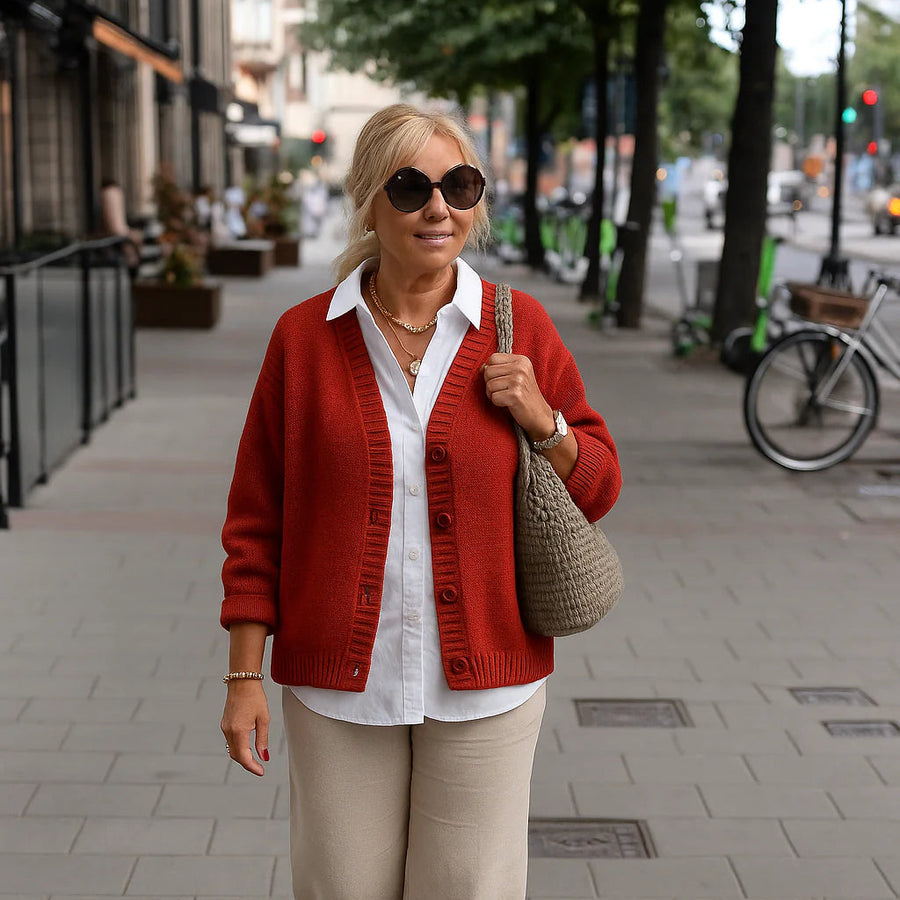 UPDATE: Due to high demand during the anniversary sale, only 4 units are still available.The Marcella Elegant Cardigan was designed for women who appreciate gentle sophistication in everyday wear. With its soft blush tone, relaxed shape, and thoughtful pocket detailing, it offers both charm and practicality—perfect for layering over blouses, adding warmth to casual outfits, or creating a graceful touch for your daily wardrobe.
