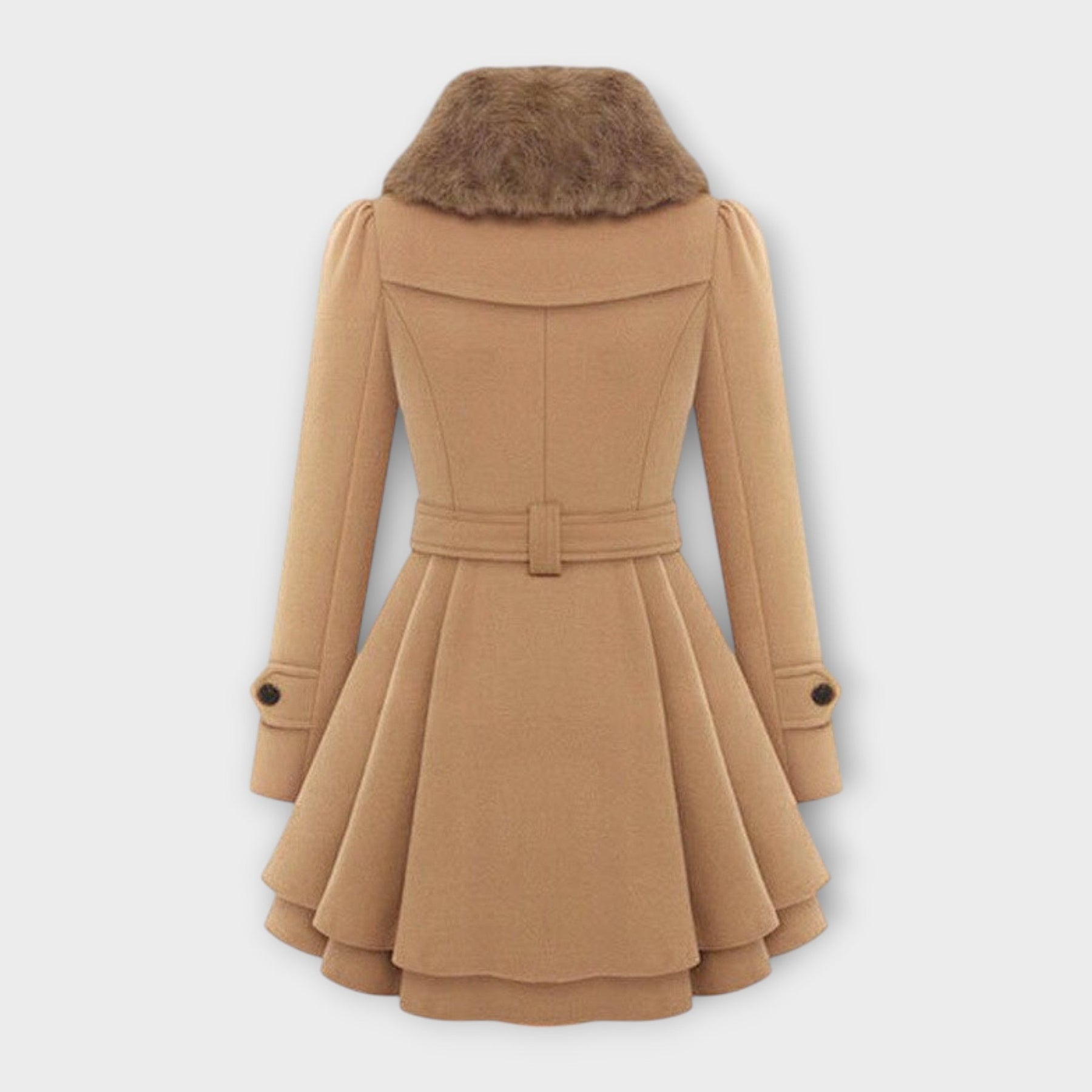 UPDATE: Due to high demand during the anniversary sale, only 4 units are still available.Elivara combines feminine refinement with cozy warmth. Its flared silhouette creates a graceful shape, while the soft collar completes the coat with luxurious elegance. A piece that radiates strength and delicacy at the same time.
